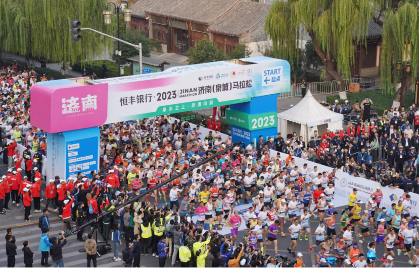 10月29日,随着发令枪鸣起,来自全国各地的3万余名跑者依次踏过起跑线,沿着风光旖旎的泉城特色赛道开始了2023济南(泉城)马拉松的征程。