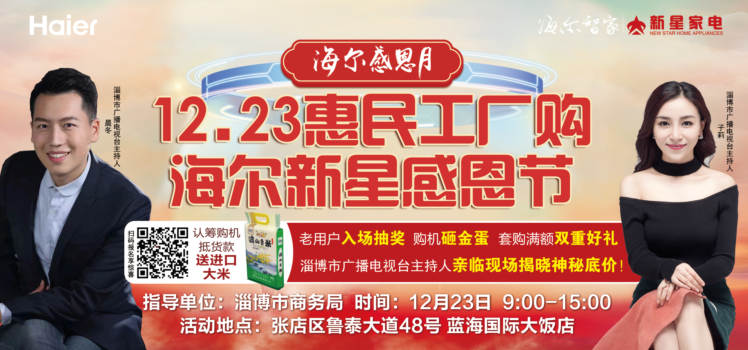 据了解,12月23日淄博蓝海国际大饭店将举办海尔新星工厂直销会。此次活动得到了淄博市商务局的全程指导,旨在为广大消费者提供更多的优质家