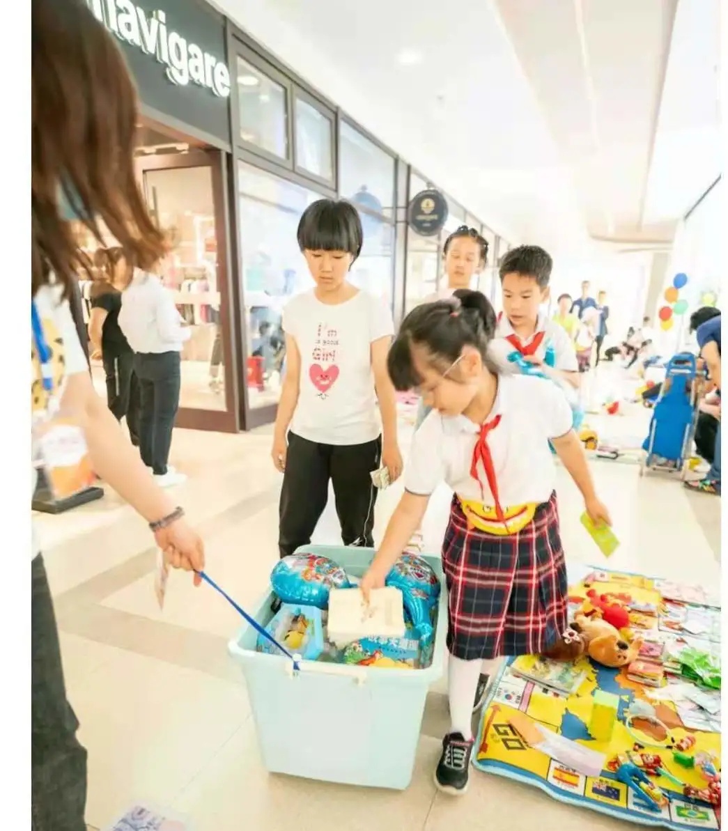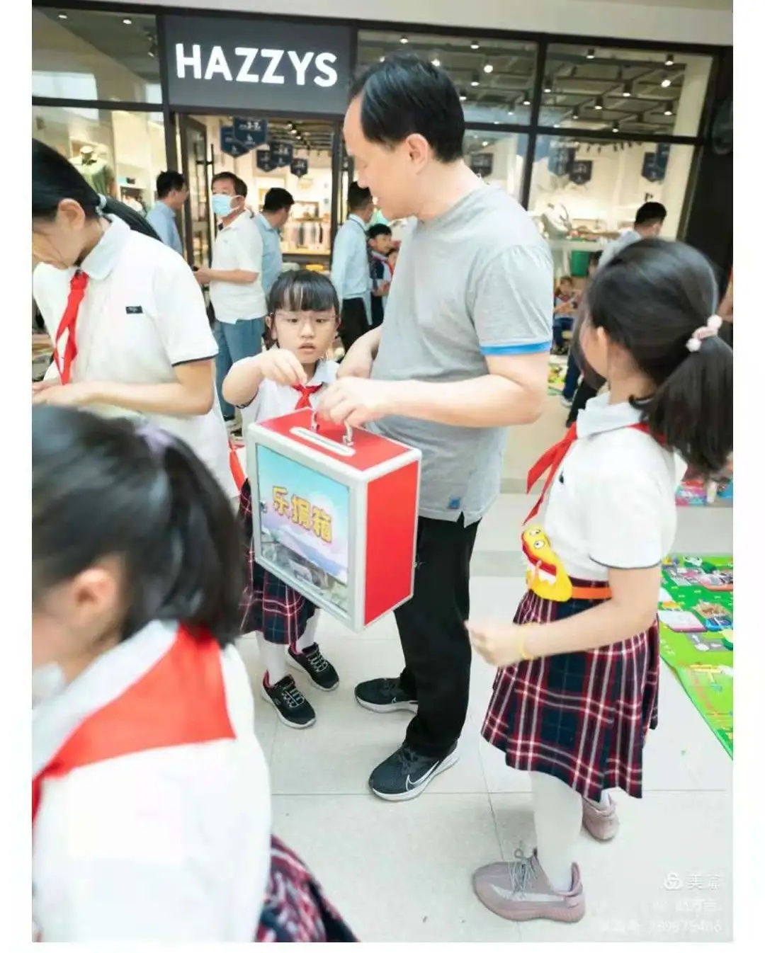义卖活动结束后,孩子们将义卖所得投入现场专门设置的乐捐箱,小朋友自发为明天儿童康复中心的自闭症儿童捐款捐物,给特殊儿童更多温暖。
