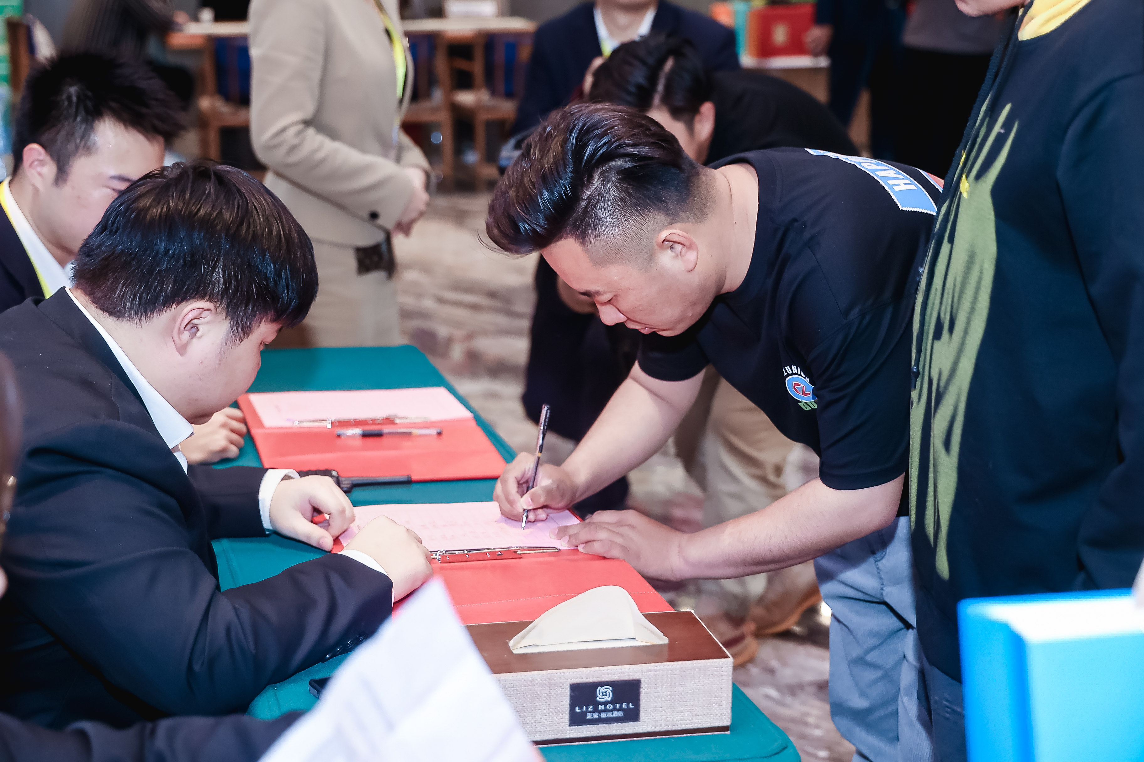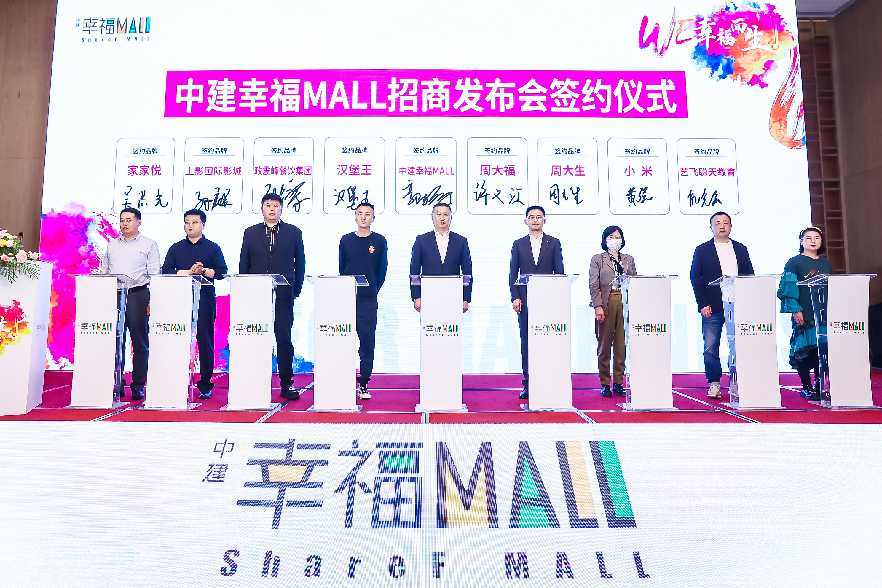 山东中建城发公司产业发展事业部党总支书记、执行总经理郭大磊上台,与家家悦、上影国际、政震峰餐饮集团、汉堡王、周大福、周大生、华为、小米、艺飞聪天等代表商户进行现场签约。