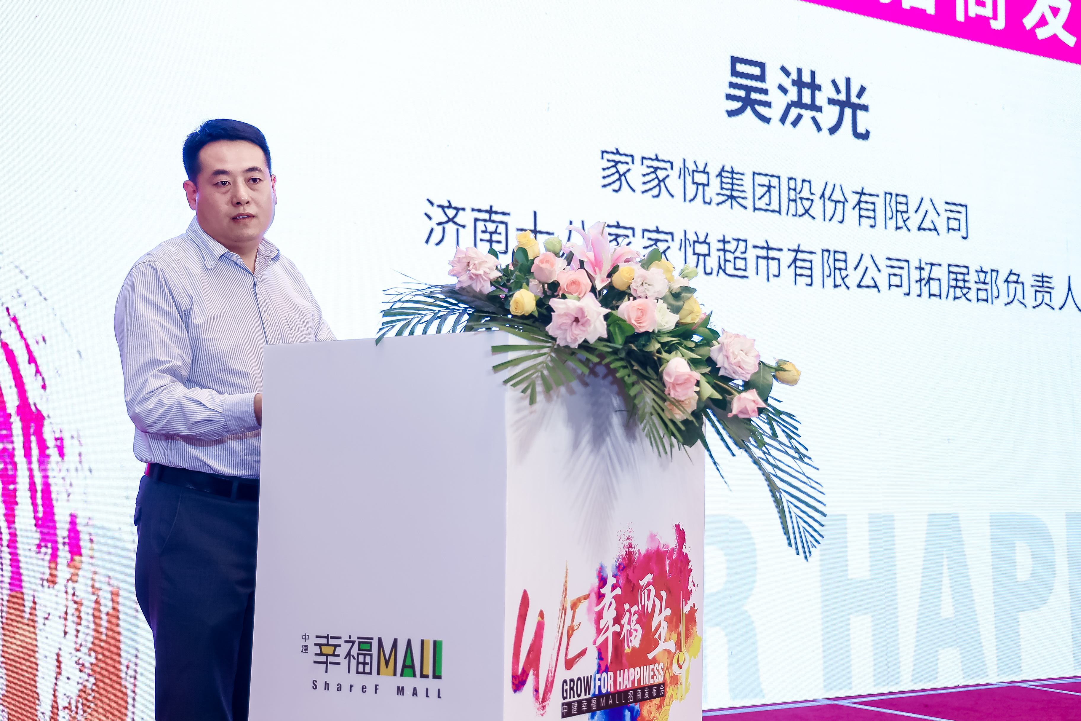 家家悦集团股份有限公司、济南十八家家悦超市有限公司拓展负责人吴洪光代表入驻商户致辞,他表示,本次签约开启了双方携手并进、共启繁荣的新里程,必将为更多槐荫百姓带来全新生活消费体验。