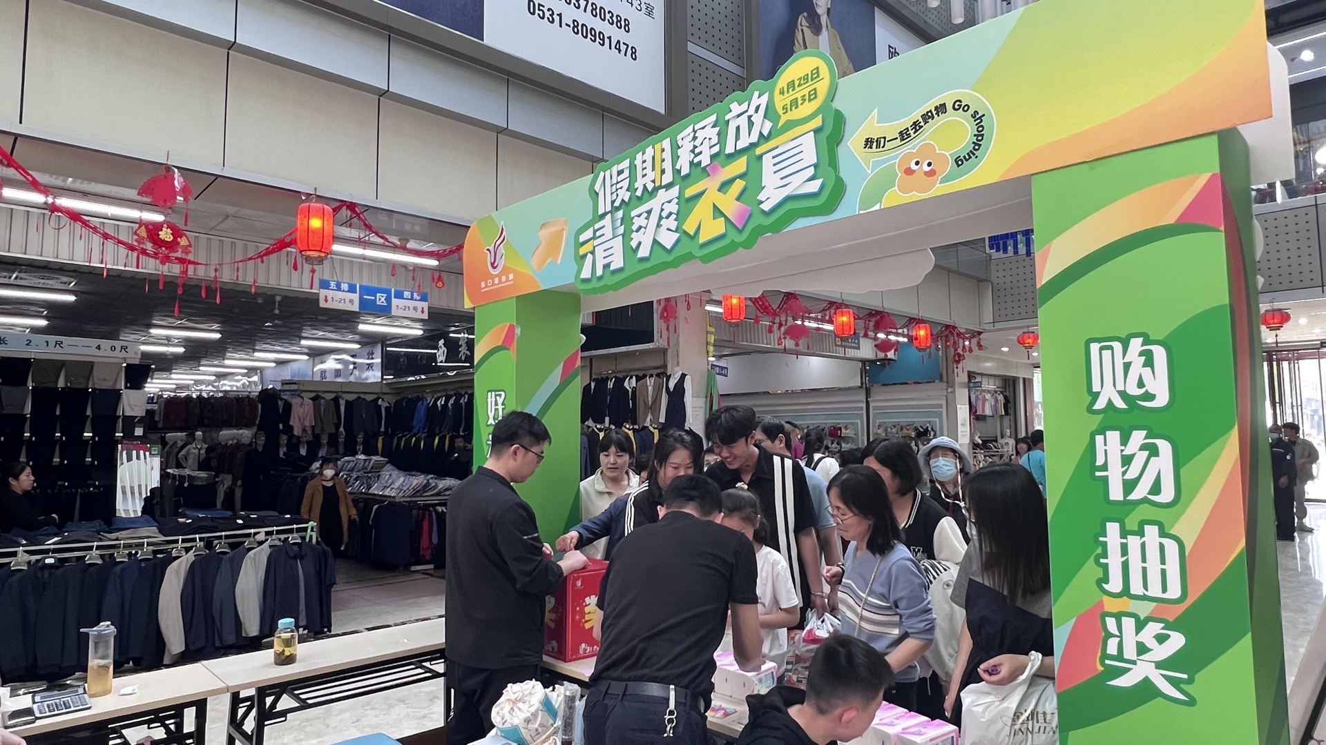 记者在活动现场发现,此次五一小长假济南泺口服装城为了给消费者提供更佳的购物体验,还准备了丰厚的购物抽奖环节,礼品十分丰富。
