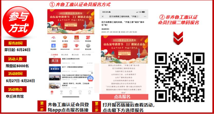 参与本次活动报名,齐鲁工惠认证会员直接登陆即可登录app,点击首页报名链接后查看活动,点击最下方选择报名。非齐鲁工惠认证会员,可通过扫描二维码报名↓↓↓