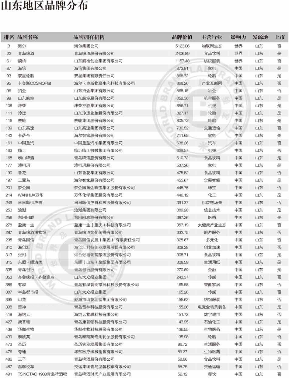 除此之外,潍柴、玲珑、赛轮、山东高速、卡萨帝、中国重汽、临工、崂山啤酒、澳柯玛、鲁花以及三翼鸟11个品牌跻身前200强。